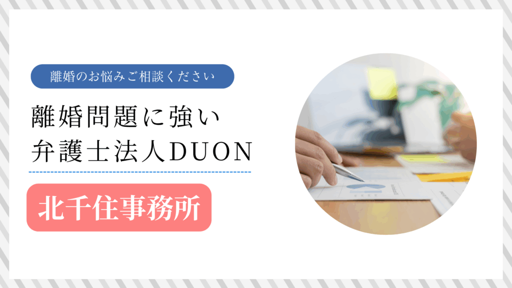 離婚を考えている方、親権や養育費で悩んでいる方、不倫慰謝料を請求したい方、東京都足立区・北千住エリアで「離婚 弁護士」をお探しなら、弁護士法人DUON 北千住事務所にご相談ください。
