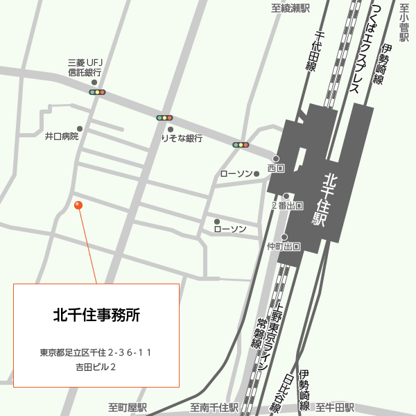 足立区・荒川区・葛飾区・台東区・墨田区など、北千住周辺の幅広い地域からご相談をいただいています。